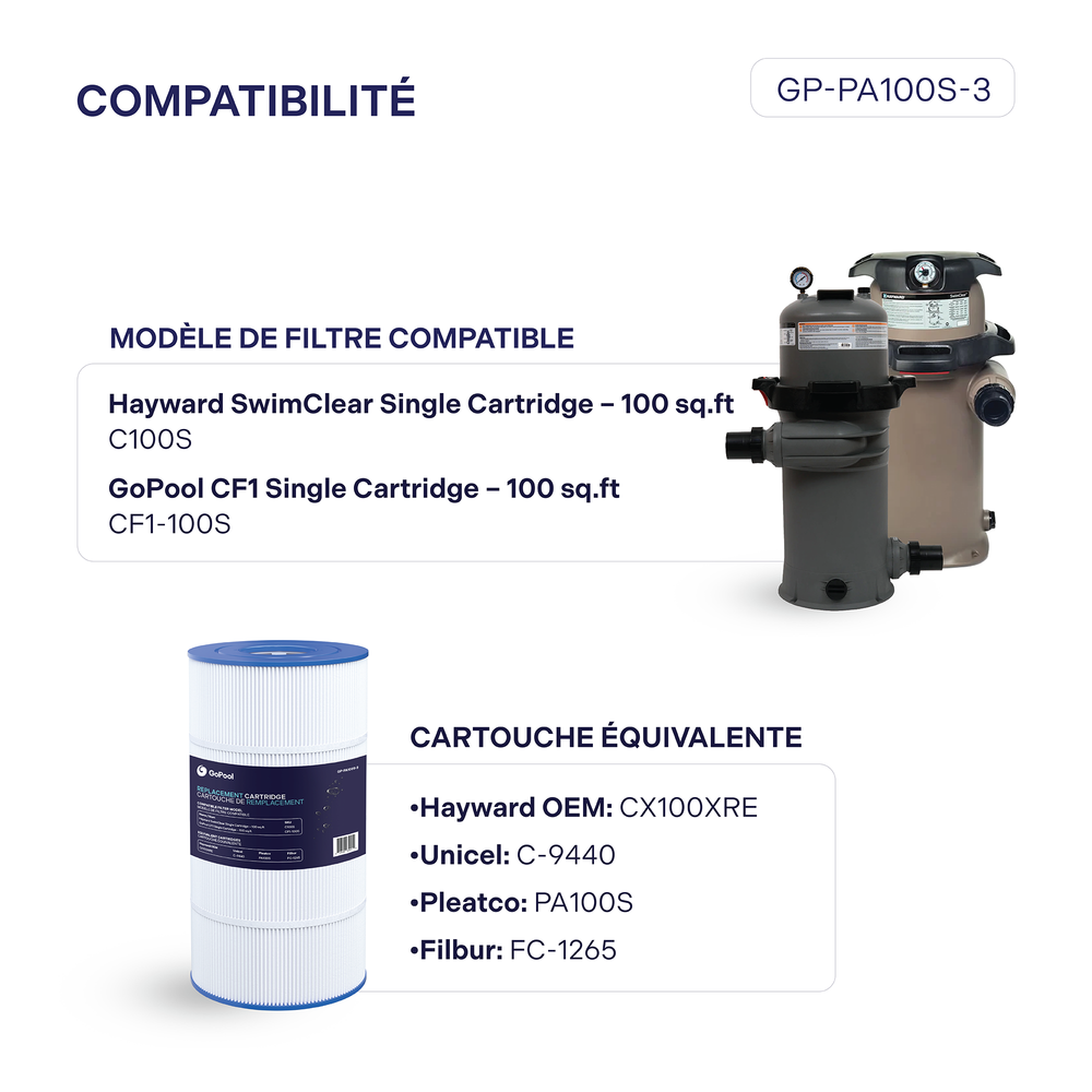 - Compatible avec les filtres Hayward SwimClear C100S et GoPool CF1-100S