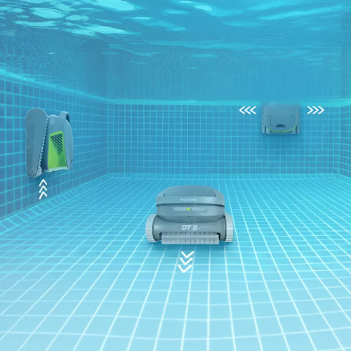 The Poolmate DT B is a cordless robotic pool cleaner engineered to deliver powerful, intelligent, and effortless cleaning performance. Featuring advanced navigation algorithms, it efficiently cleans the pool floor, walls, and waterline using an optimized S-shaped path for complete coverage without missed areas .