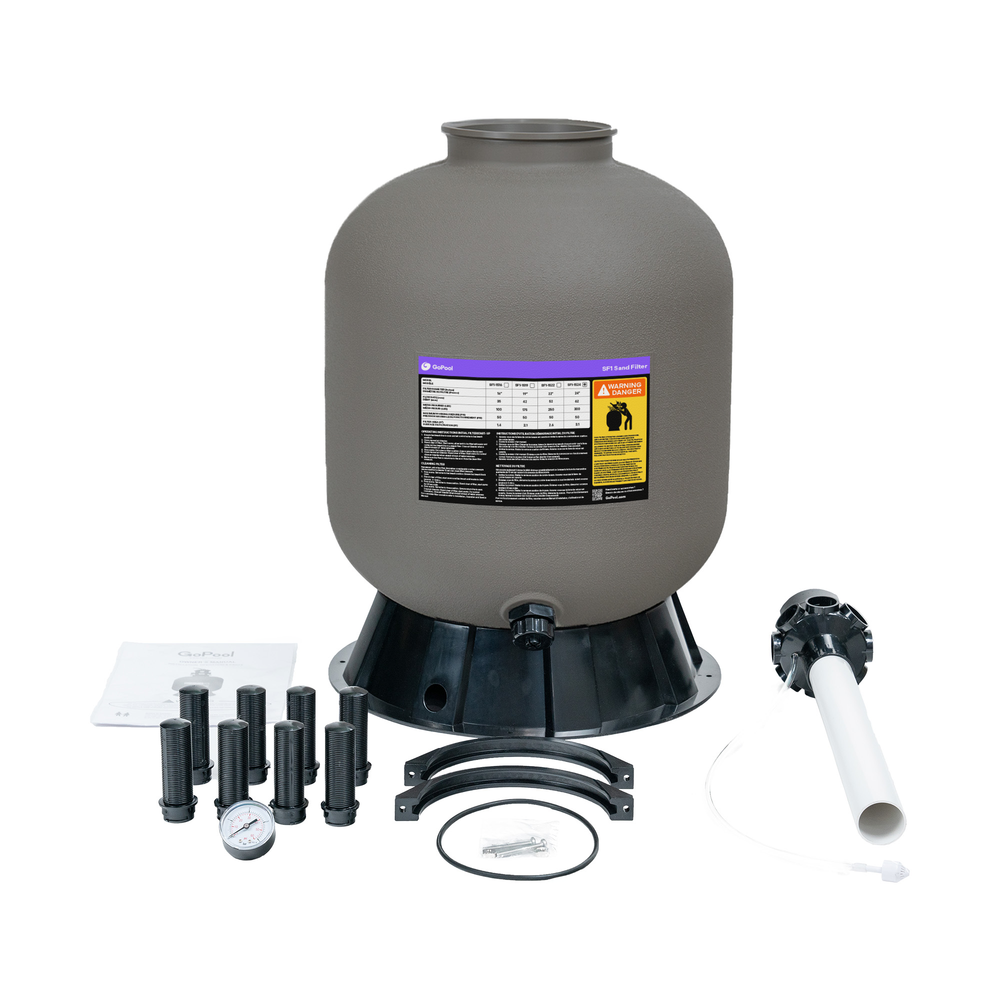 The GoPool SF1-1522 is a sand filter designed for homeowners who want higher filtration capacity without sacrificing ease of use. Its durable blow-molded tank, 6-way multiport valve, and increased filter media capacity ensure consistent and efficient filtration, even when demand increases.